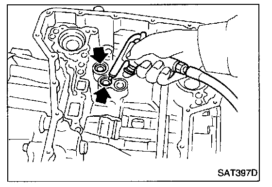 9. Apply compressed air to oil holes of transmission case and check operation of brake band.