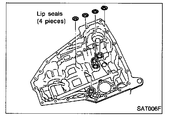 15. Install lip seals for band servo oil holes on transmission case.