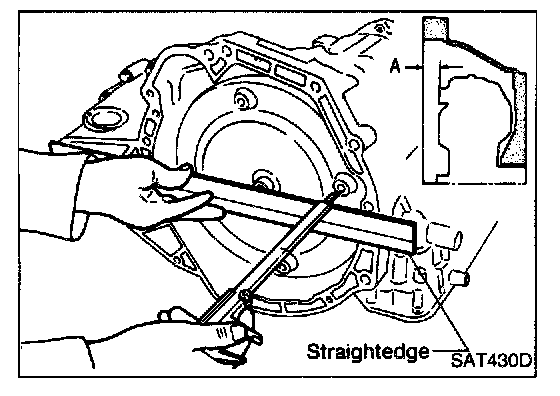 c. Measure distance "A" to check that torque converter is in proper position.