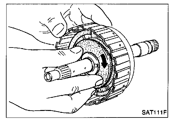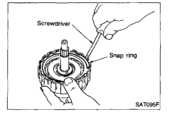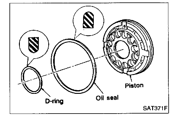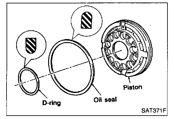 c. If retaining plate does not move to snap ring, D-ring or oil seal may be damaged or fluid may be leaking at piston check ball.