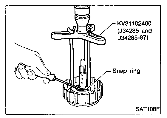 4. Set Tool on spring retainer and install snap ring while compressing return springs.