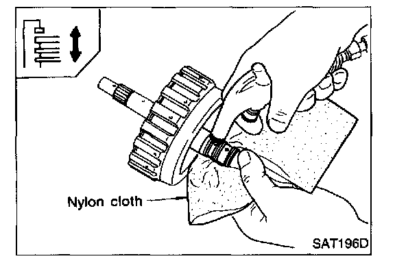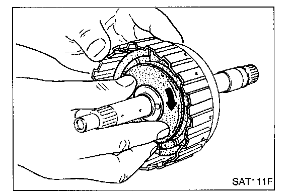 7. Remove piston from high clutch drum by turning it.