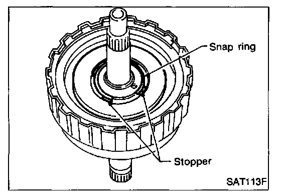 - Do not align snap ring gap with spring retainer stopper.