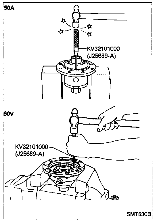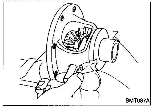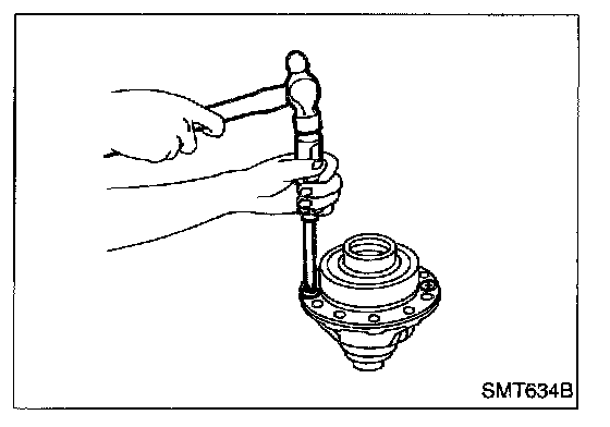 Note: When inserting, be careful not to damage pinion mate thrust washers.