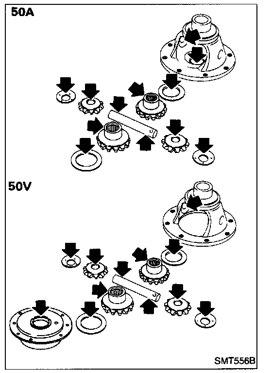 - Check mating surfaces of differential case, viscous coupling, side gears and pinion mate gears.