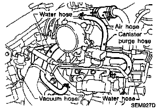 6. Remove air duct to intake manifold, blow-by pipe, vacuum hoses, fuel hoses, wires, harness, connectors and so on.