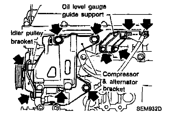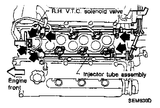 - When tightening cylinder head bolts, intake camshaft sprocket bolts, crankshaft pulley bolt, camshaft bracket bolts, idler sprocket bolts and chain guide bolts, apply new engine oil to thread portions and seat surfaces of bolts.
