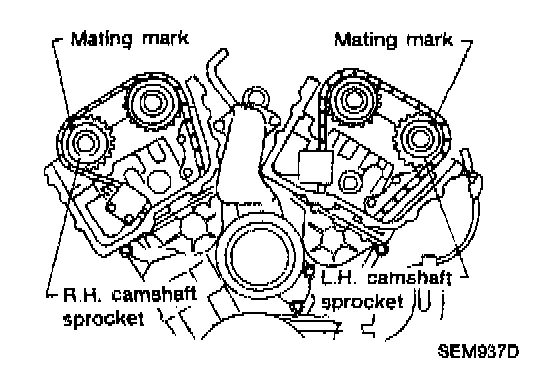 - Rotate crankshaft until mating marks on camshaft sprockets are set in correct position.