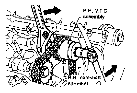 32. Remove camshaft sprockets and V.T.C. assemblies.