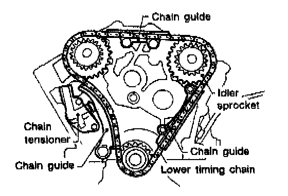 - After removing timing chain, do not turn crankshaft and camshaft separately, or valves will strike piston heads.