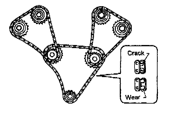 Note: Check for cracks and excessive wear at roller links. Replace chain if necessary.