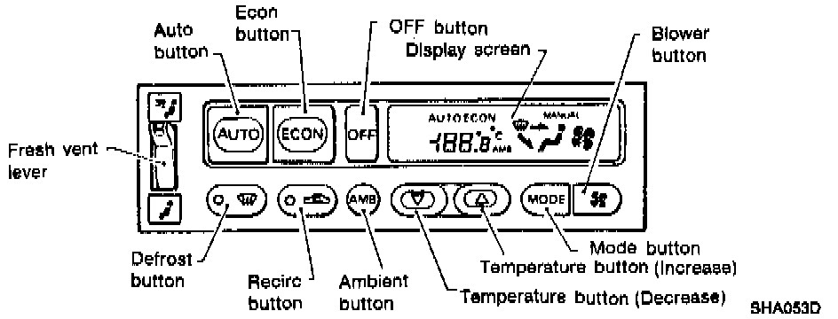 The compressor, air inlet door, air mix door, outlet doors, and blower speed are automatically controlled so that the in-vehicle temperature will reach, and be maintained at the set temperature selected by the operator.