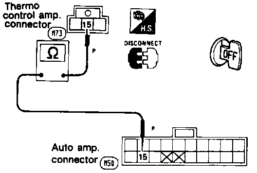 - Check for continuity between Auto Amp harness terminal 15 and Thermo Control Amp harness terminal 15. Continuity should exist.