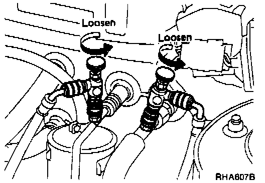 1. Completely loosen adapter valves of low pressure and high pressure lines.