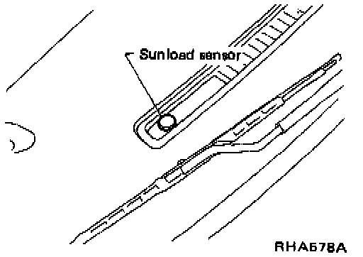 The sunload sensor is located on the right defroster grille. It detects sunload entering through windshield by means of a photo diode and converts it into a current value which is then input to the auto amplifier.