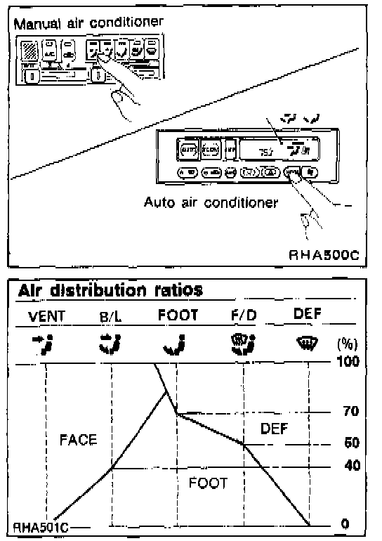 b) Confirm that discharge air comes out according to the air distribution ratios table at left.