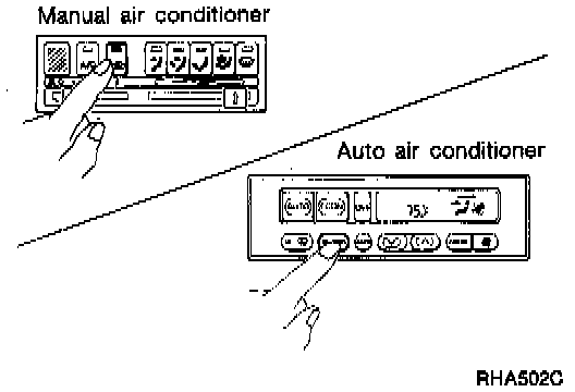 OPERATIONAL CHECKThe purpose of the operational check is to confirm that the system is as it should be. The systems which will be checked are the blower, mode (discharge air), intake air, temperature decrease, temperature increase, A/C switch and the memory function.
