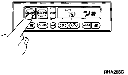 b) Display should indicate AUTO (no ECON, no MANUAL). Confirm that the compressor clutch engages (audio or visual inspection).