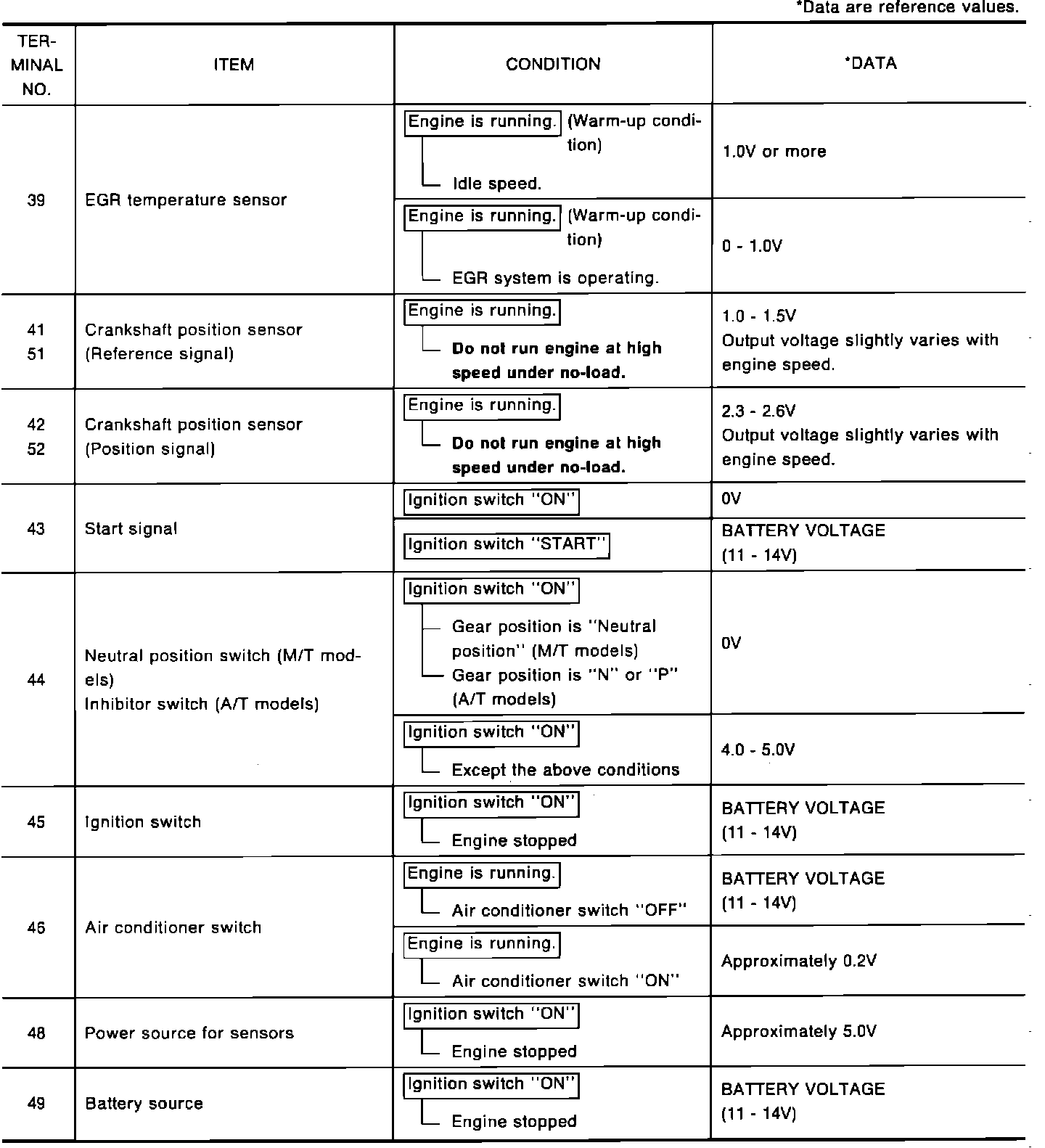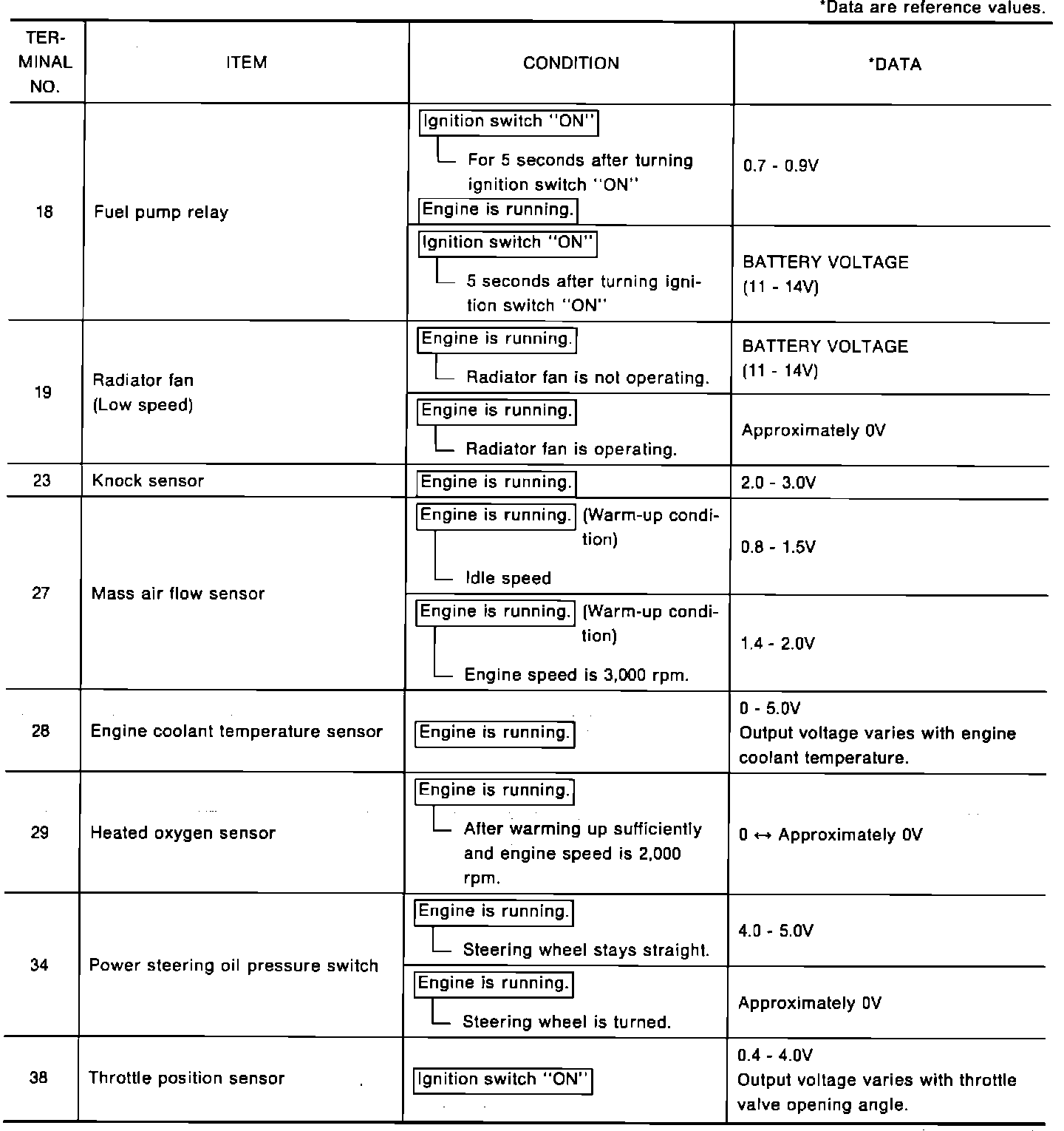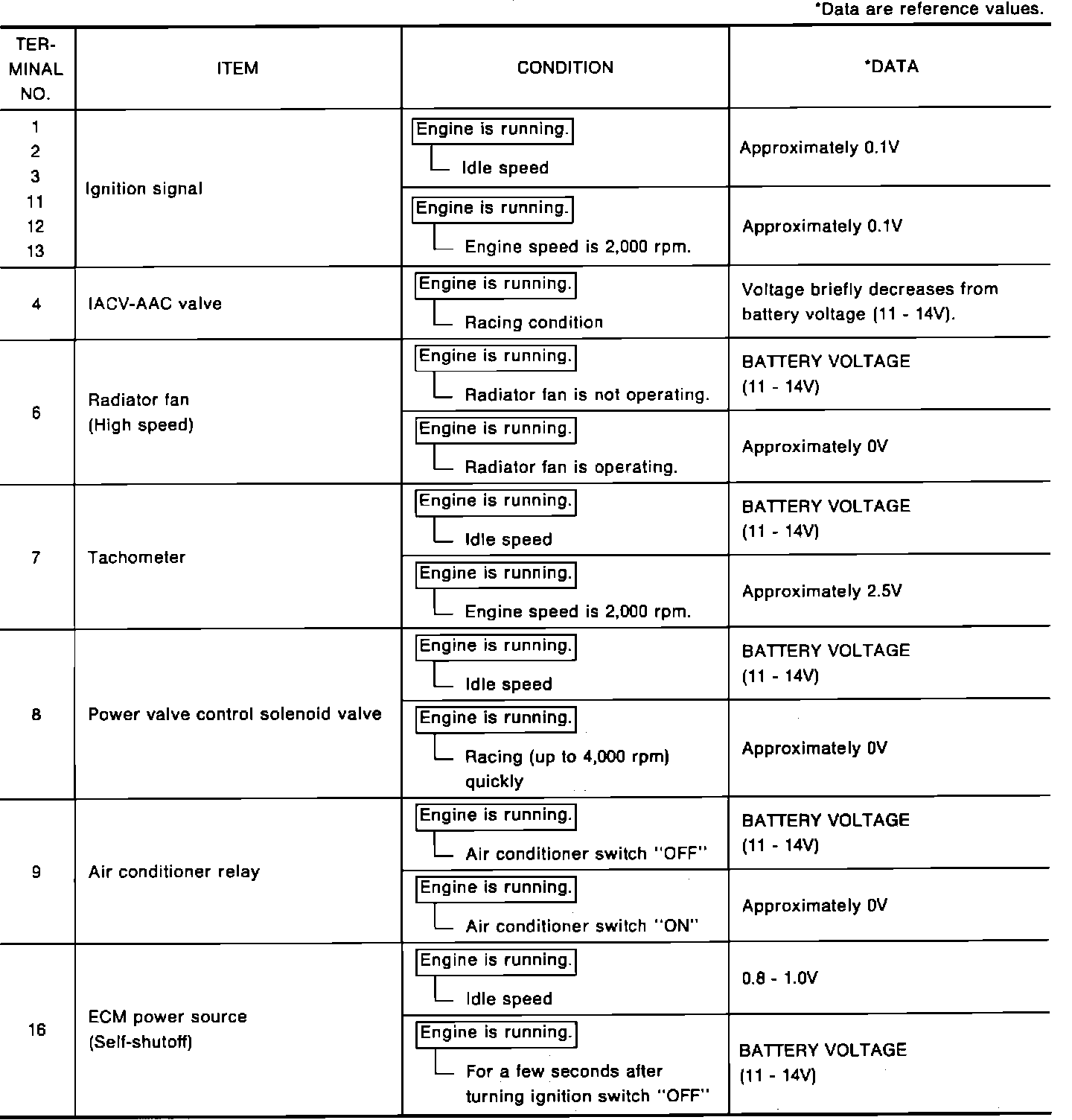 NOTE: Testing of circuit voltages can be done at the ECM connector by CAREFULLY backprobing the connector. Use a high-quality digital DVOM.
