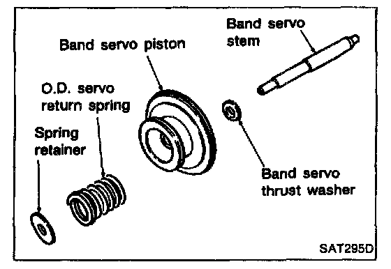 2. Install band servo piston stem, band servo thrust washer, O.D. servo return spring and spring retainer to band servo piston.