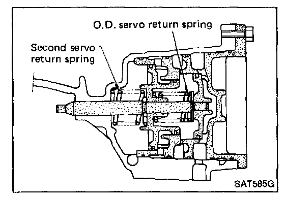 - Hold O.D. band servo piston while applying compressed air.