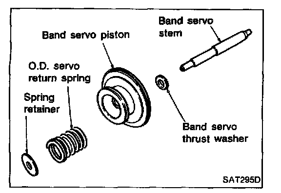 8. Remove O.D. servo return spring, band servo thrust washer and band servo piston stem from band servo piston.