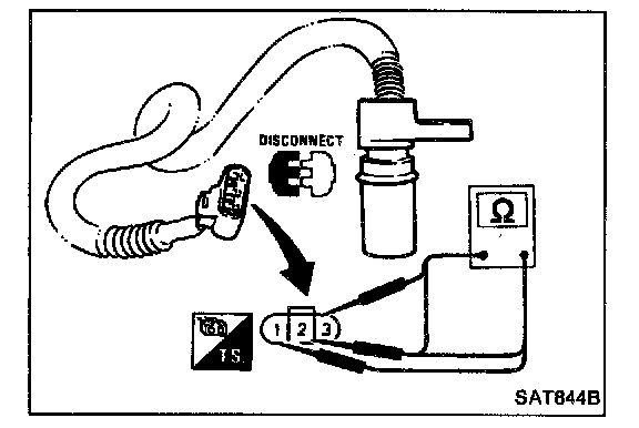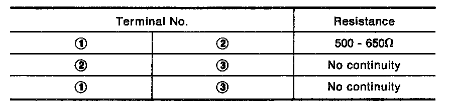 Check resistance between terminals (1), (2) and (3)