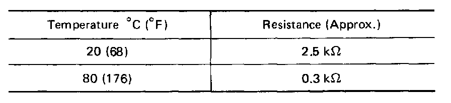 Check resistance between terminals (6) and (7) while changing temperature as shown at left.