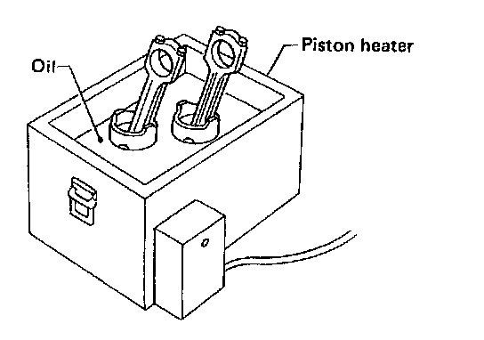2. Heat piston to 60 to 70°C (140 to 158°F) and assemble piston, piston pin, connecting rod and new snap ring.