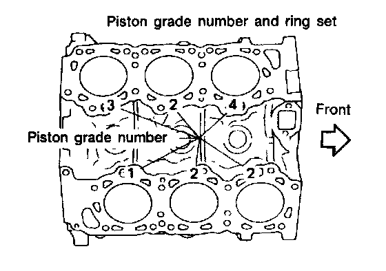 ^ If both cylinder block and piston are replaced with new ones, select piston of the same grade number punched on cylinder block upper surface.