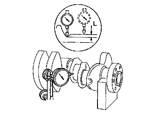 a. When grinding crankshaft journal, confirm that "L" dimension in fillet roll is more than the specified limit.