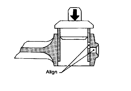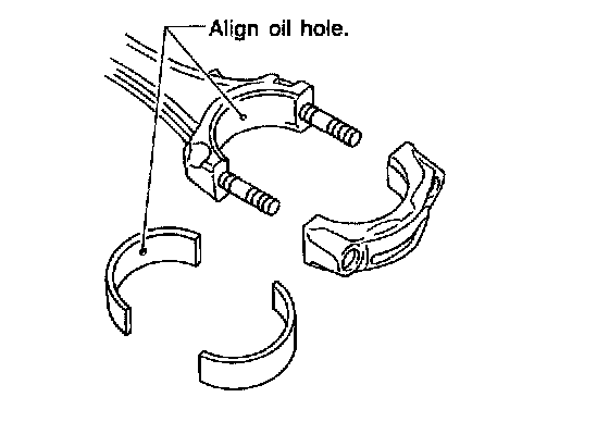 ^ Install bearings so that oil hole in connecting rod aligns with oil hole of bearing.