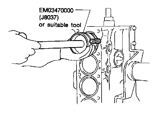 7. Install main bearing caps, and tighten to the specified torque to prevent distortion of cylinder bores in final assembly.