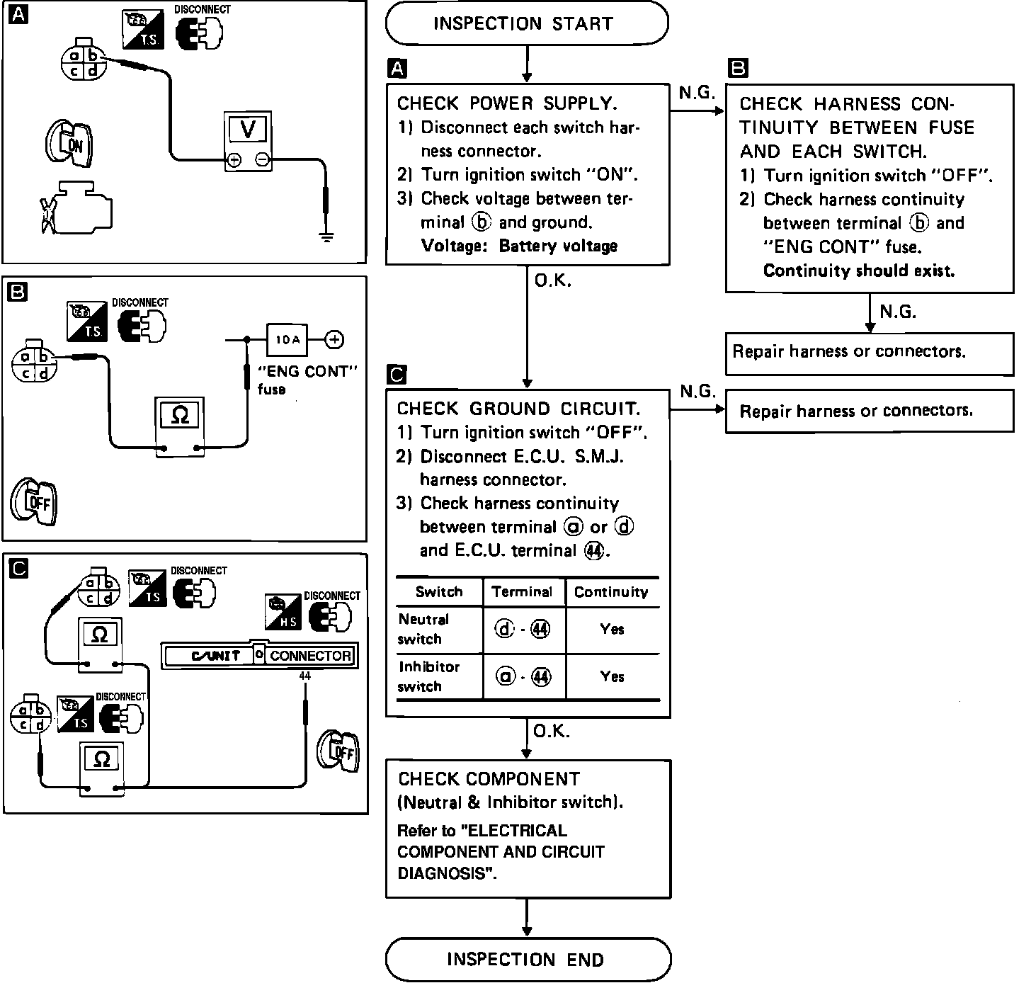 Neutral/Inhibitor Switch Control Circuit Diagnostic Chart:
