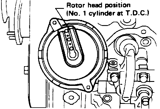 3. Install the distributor, making sure the rotor is aligned as shown when fully seated.