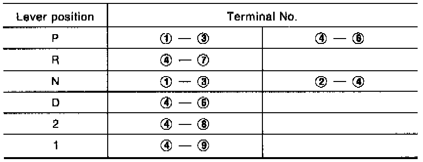 4. Check continuity of inhibitor switch terminal. - Refer to step 1.
