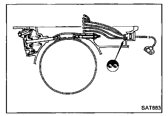 43. Pour approx. 2 liters (2 - 1/8 US qt, 1 - 3/4 Imp qt) of automatic transmission fluid into converter housing.