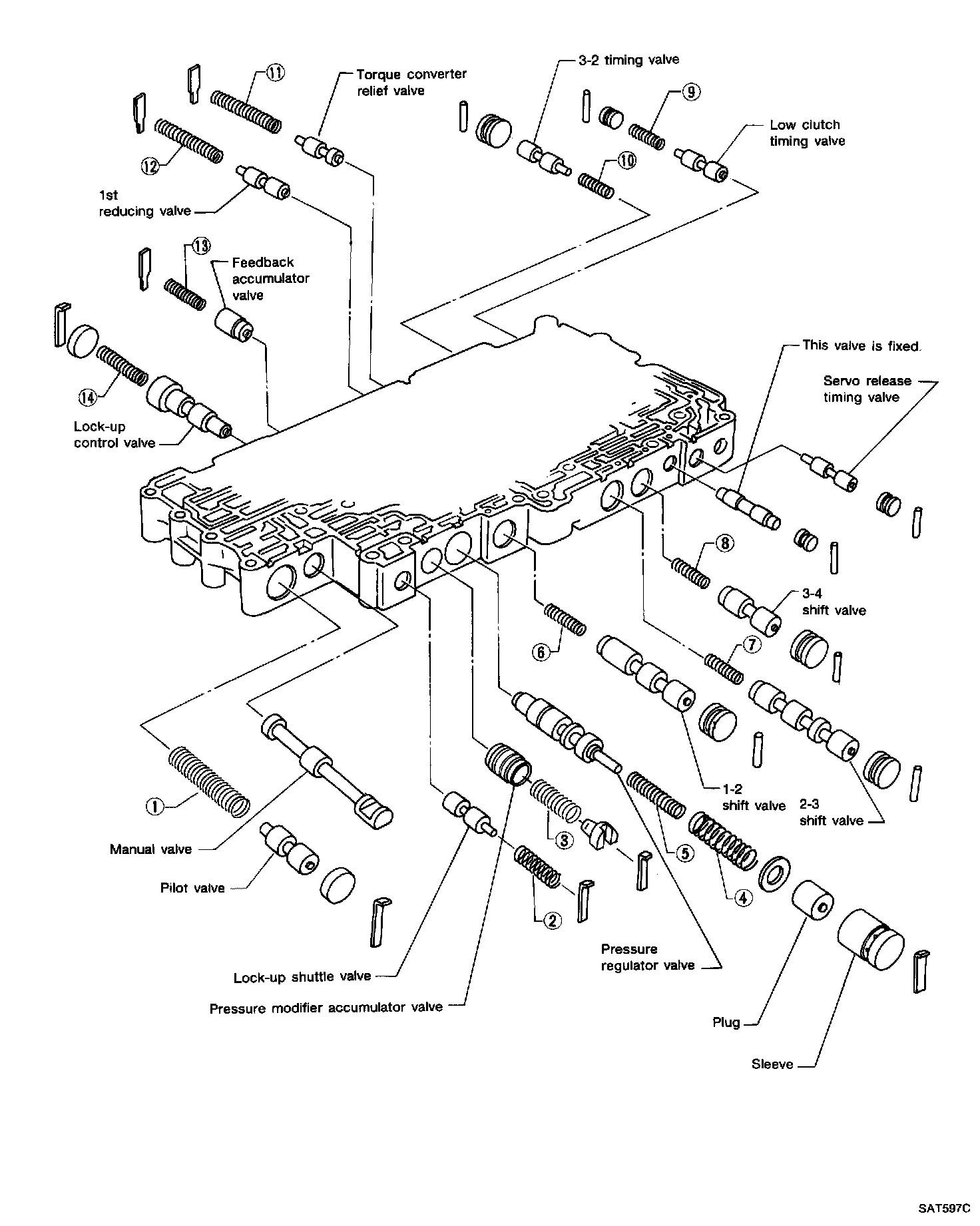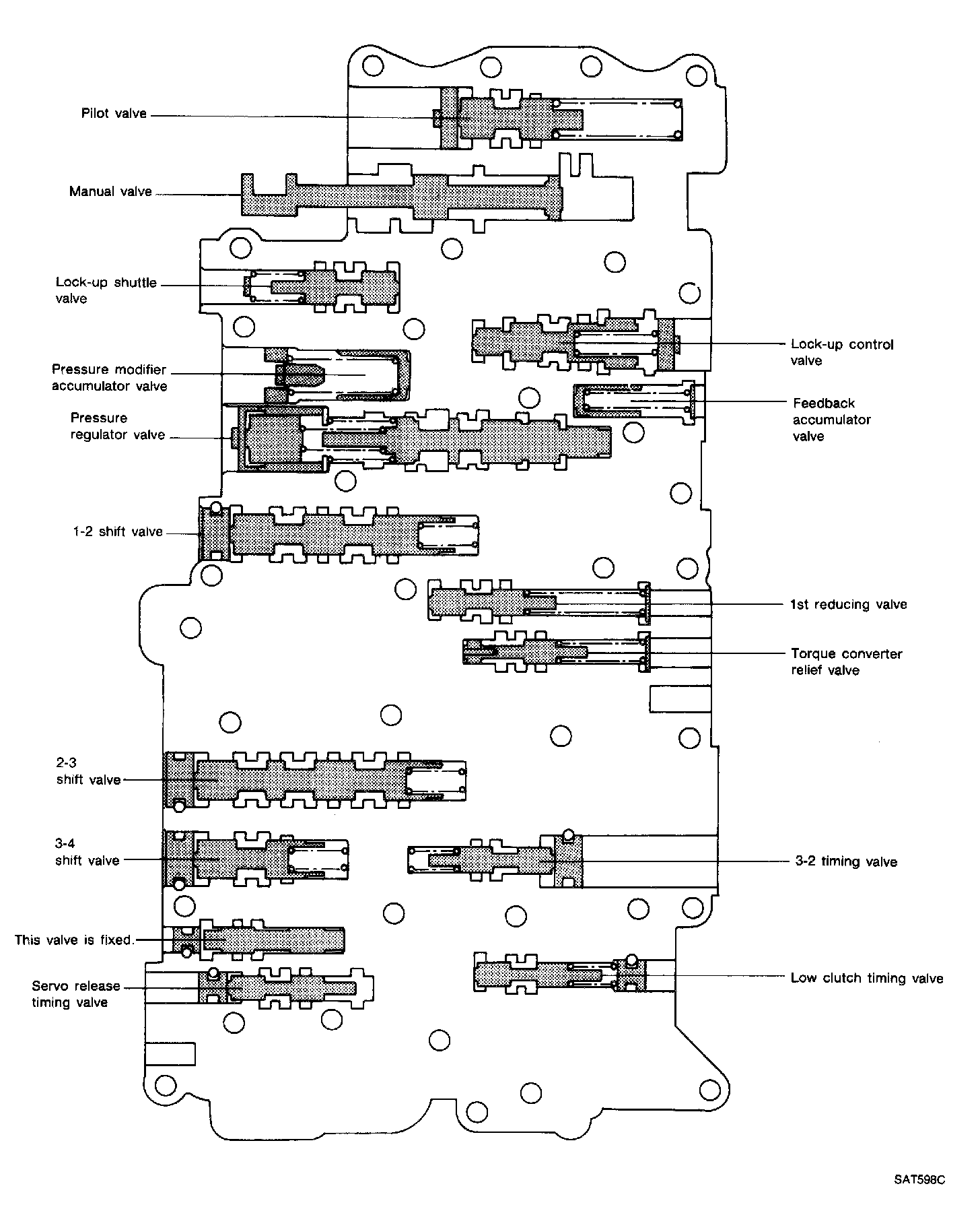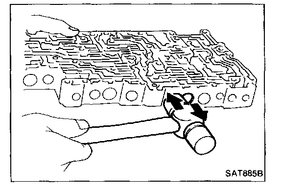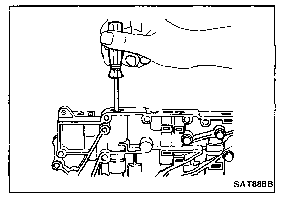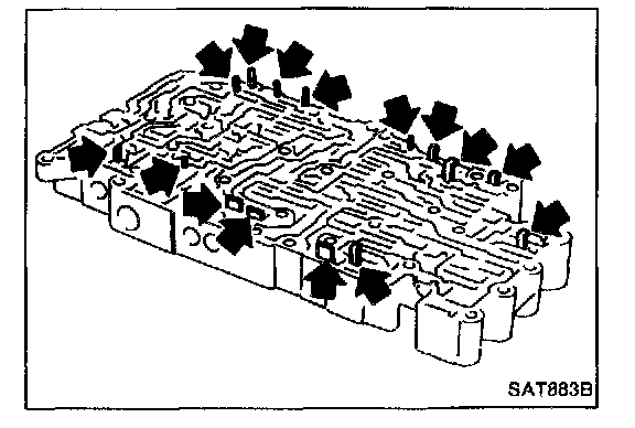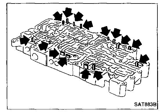 1. Lubricate the control valve body and all valves with A.T.F. Install control valves by sliding them carefully into their bores.