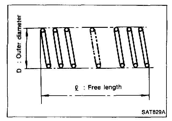 - Measure free length and outer diameter of each valve spring. Also check for damage or deformation.