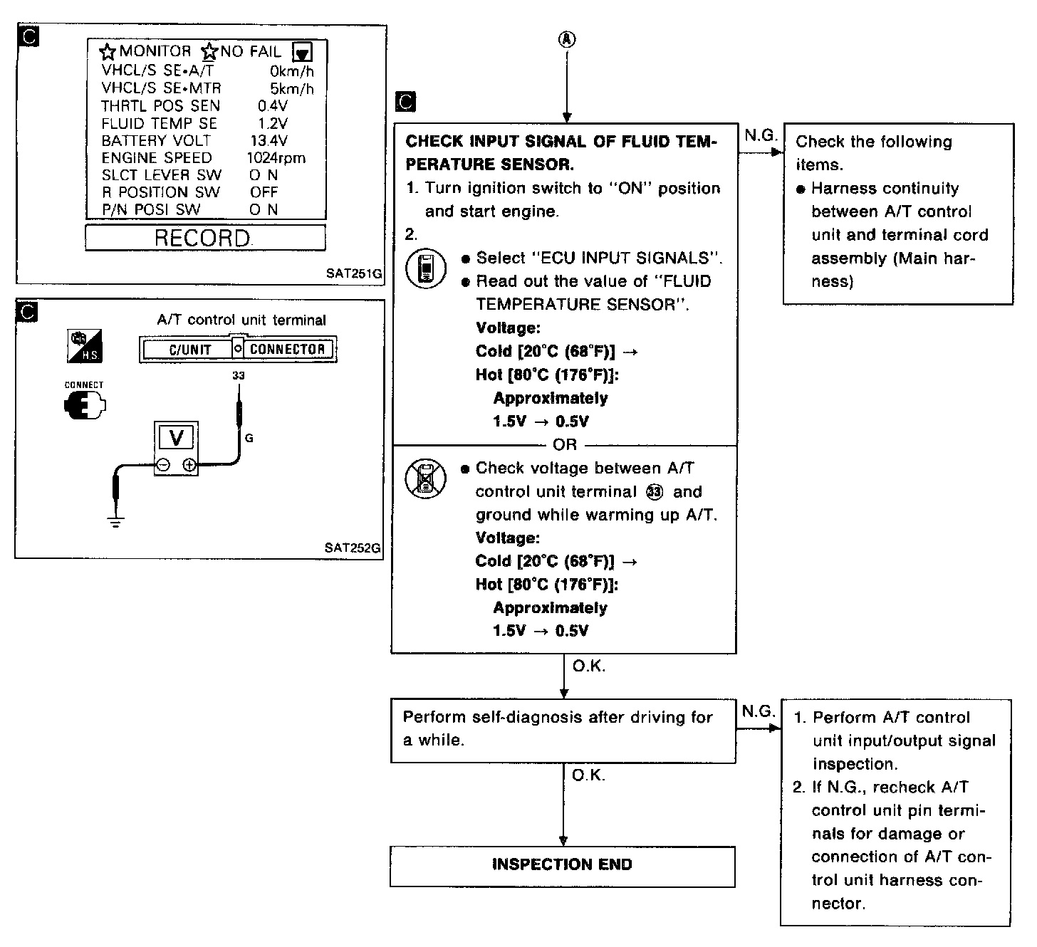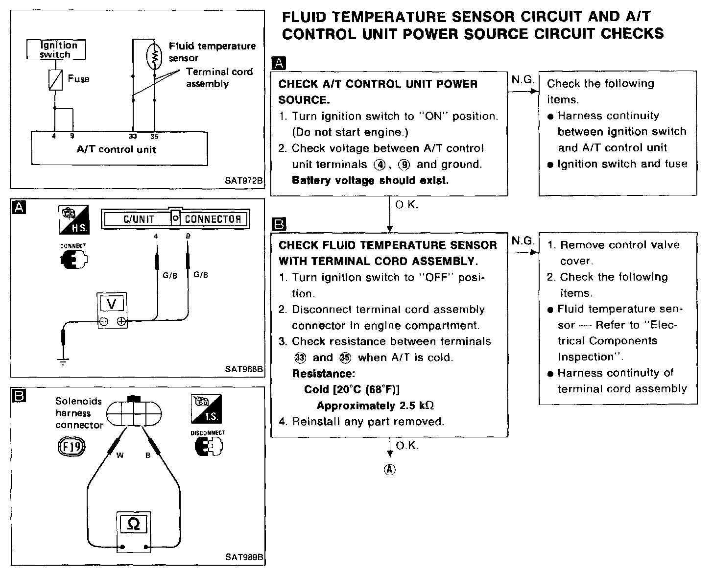 Fluid Temp. Sensor Circ. & A/T Control Unit Pwr Source Checks
