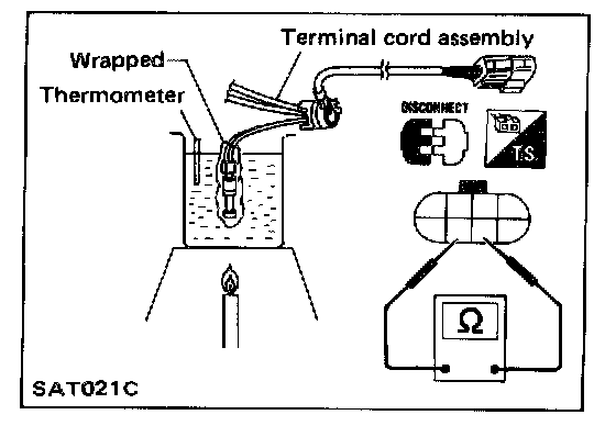 - Check resistance between two terminals while changing temperature as shown as left.