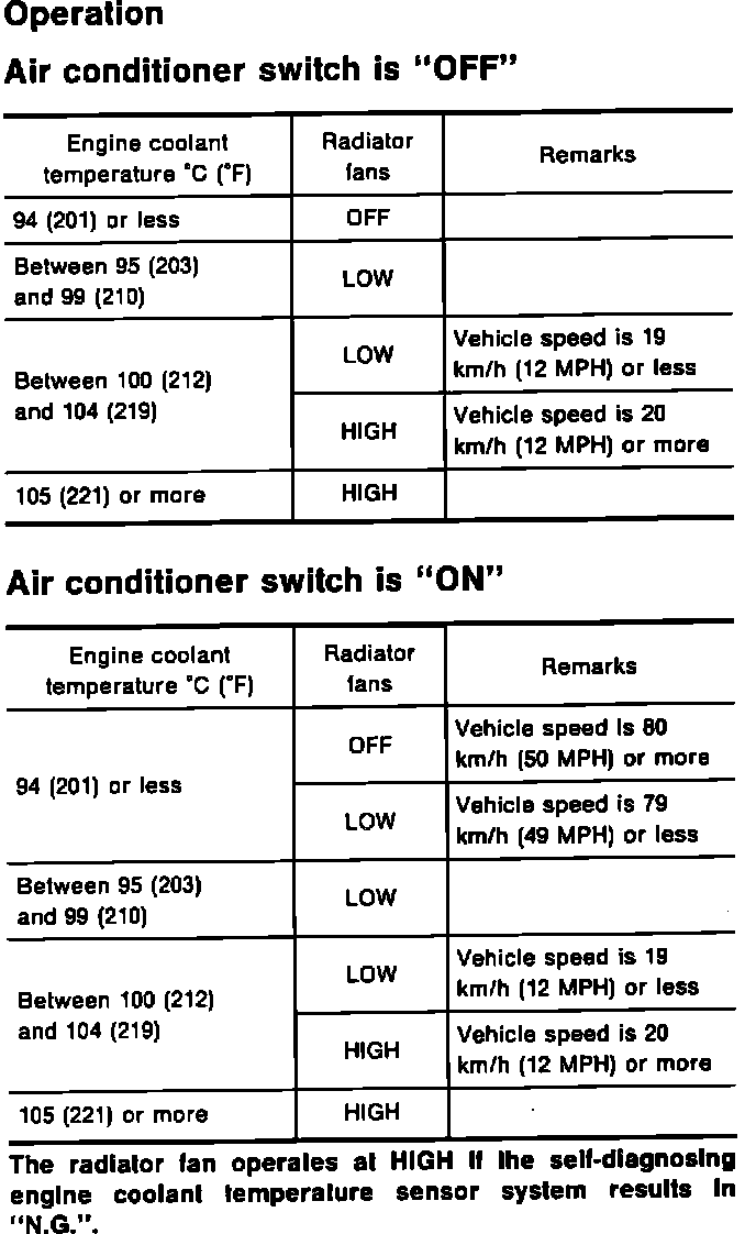 Refer to the figure for radiator fan operation operation.