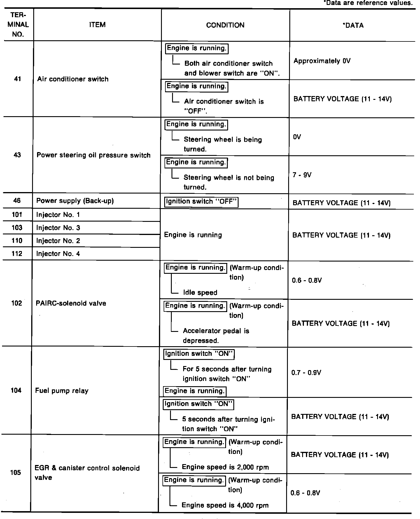 EXPECTED PIN VOLTAGES