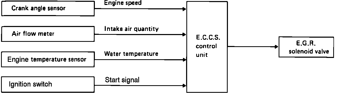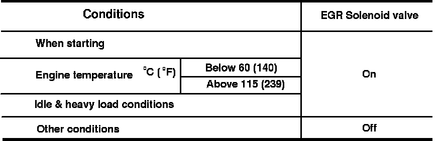 The EGR and Evaporative Canister control system is used to allow precise control of the EGR and Canister valves. The ECM receives signals from the crank angle sensor, air flow meter, engine temperature sensor and the ignition switch to determine if operation is warranted. The ECM supplies the ground circuit for the solenoid.