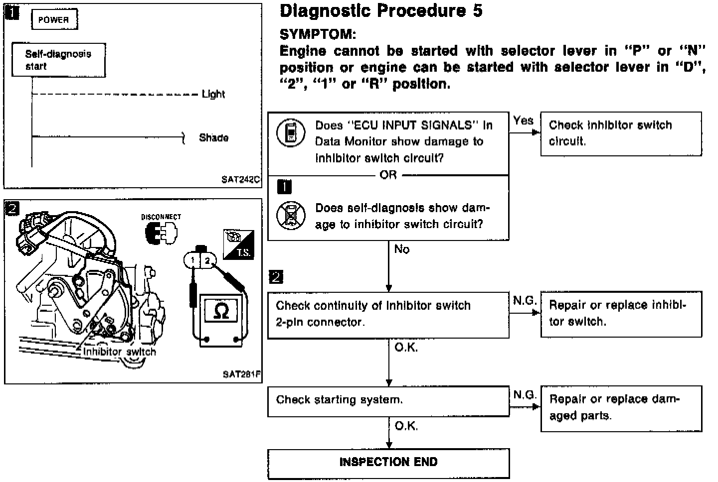 5 - No Start In P Or N Or Will Start In D, 2, 1 Or R Position: