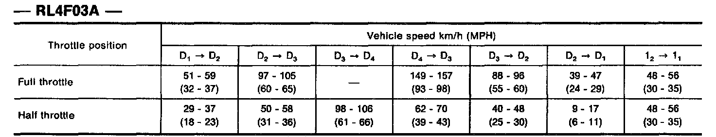 Vehicle Speed When Shifting Gears - RL4F03A: