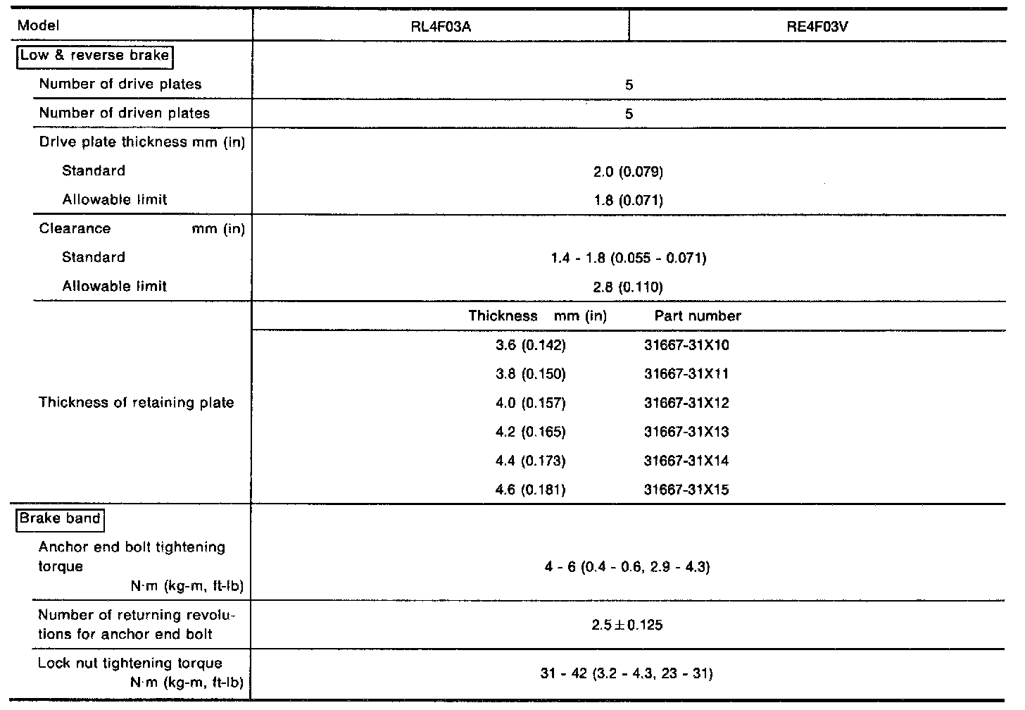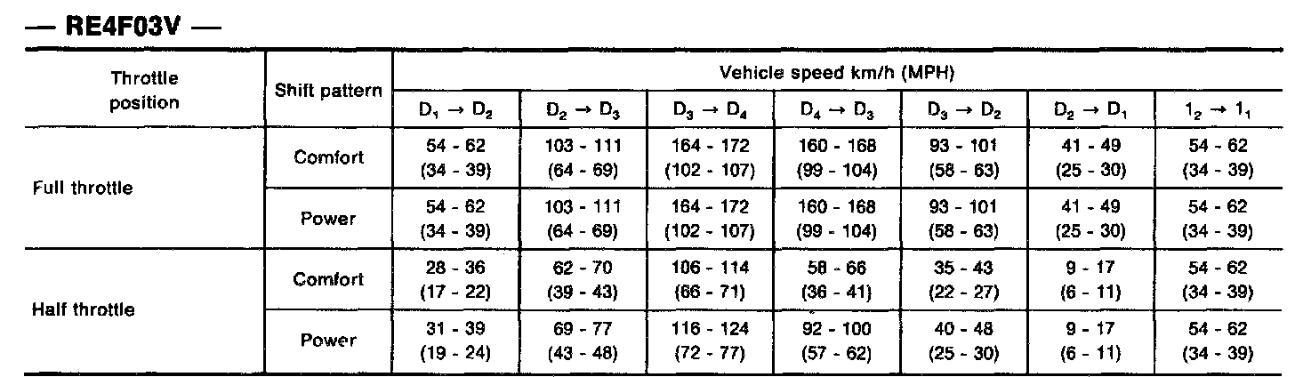 Vehicle Speed When Shifting Gears - RE4F03V: