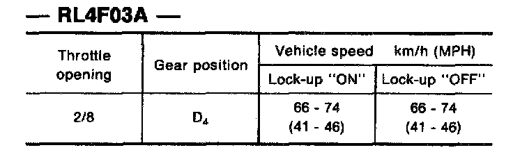 Vehicle Speed When Performing Lock-up - RL4F03A: