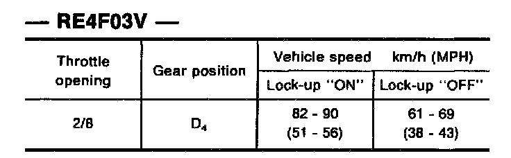 Vehicle Speed When Performing Lock-up - RE4F03V: