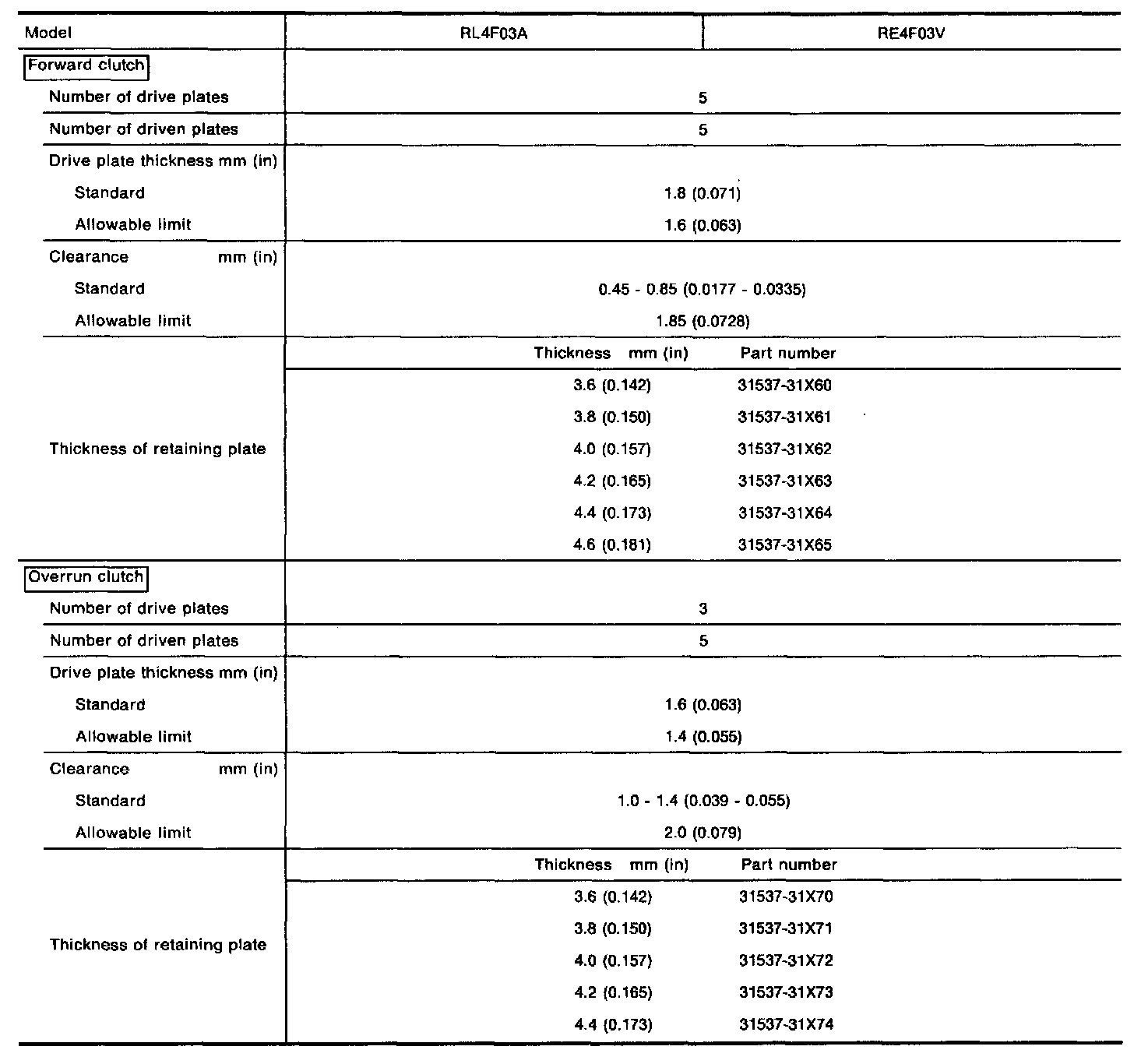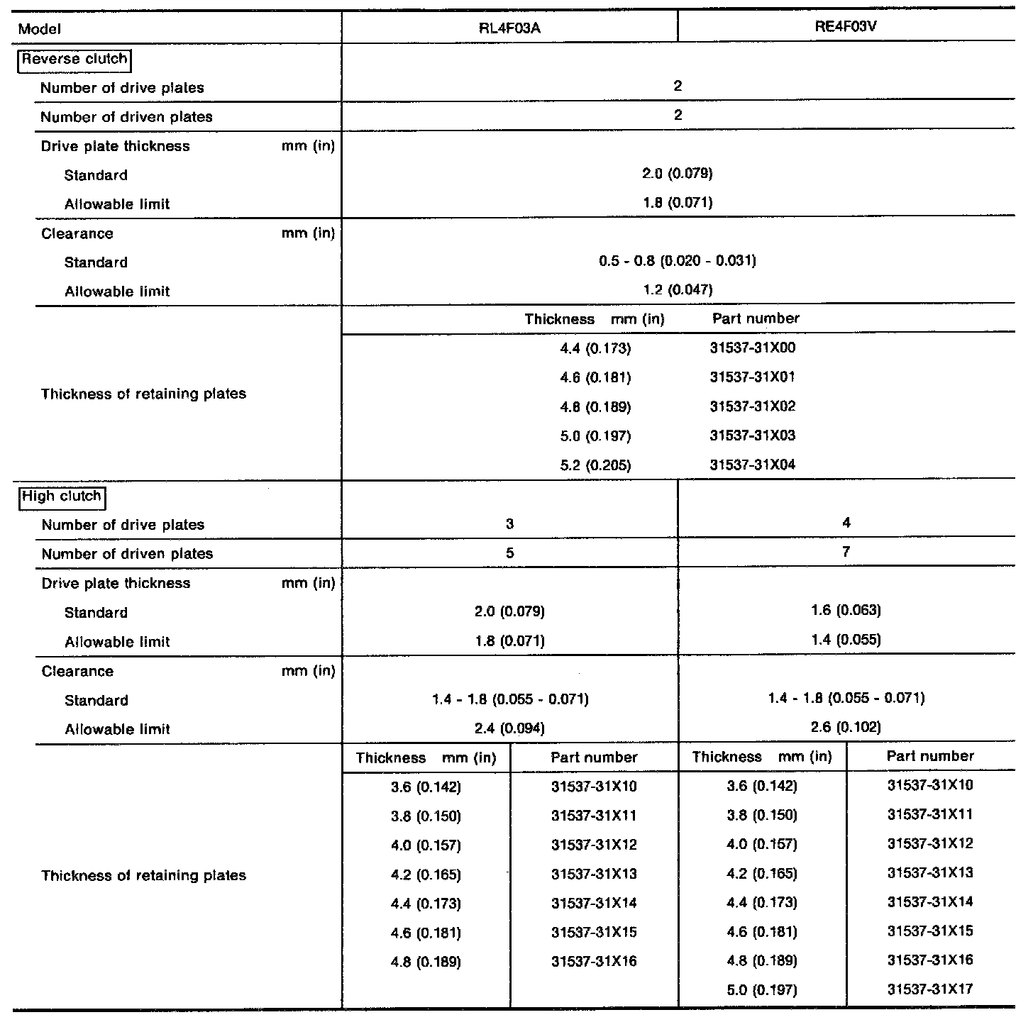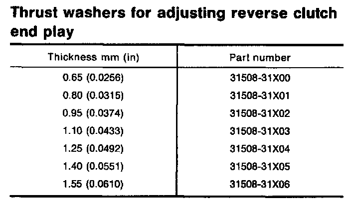 Reverse clutch end play mm (in) 0.65 - 1.00 (0.0256 - 0.0394)